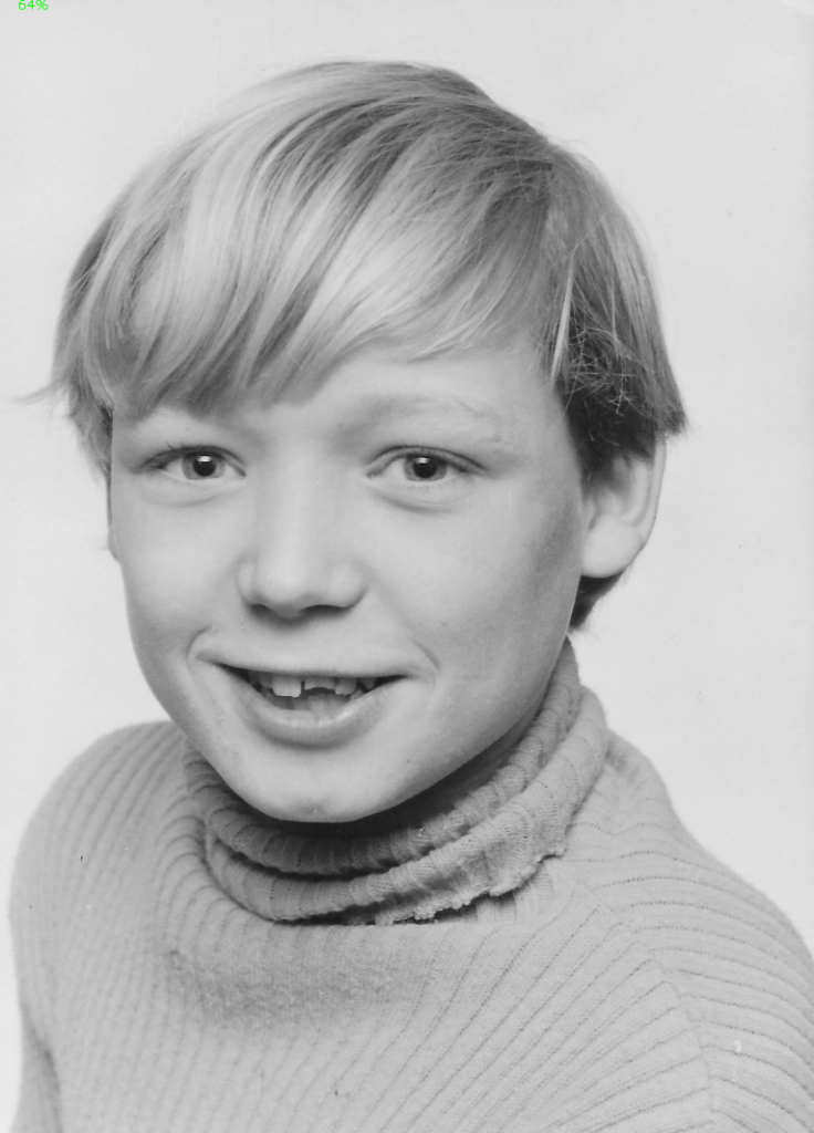 11 jaar , fanatiek bij sporten, het stukje voortand wat ik daar mis komt door een snoekduik naar een honkpaal bij slagbal omdat ik niet afgetikt wilde worden, ik spuugde de brokstukjes uit en ging verder met het spel, ik denk dat mijn ouders onderschat hebben dat ik daar erg veel last had in mijn puberteit, ik schaamde me en herinner me dat ik de hand voor de mond hield als ik met meisjes wilde praten, pas toen ik 17 werd plakte de militaire tandarts er een stukje aan, die ik er 2 dagen later bij een snoekduik door een opgeblazen auto band weer van af brak, nu duurde het niet zo lang en werd er snel een nieuw stukje aangeplakt, het blijft zichtbaar op foto’s , dat ze daar nog niks op hebben gevonden met de huidige technieken, ik heb op een kies na al mijn eigen tanden nodig met de nodige reparaties